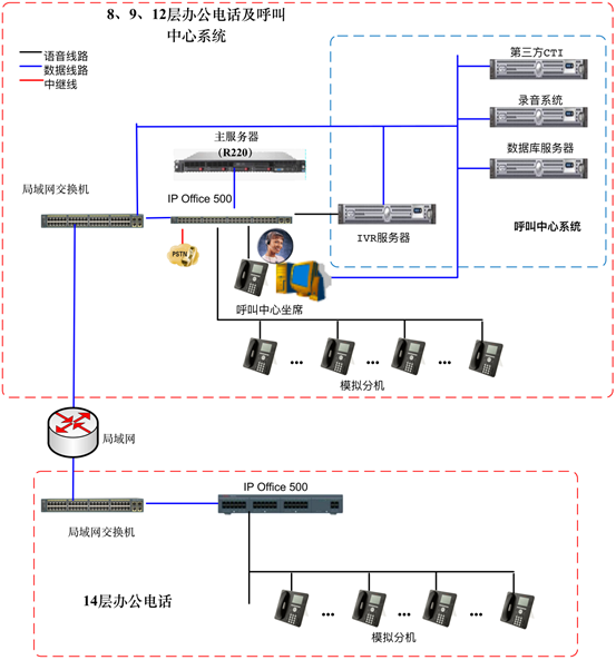 IP Office 500V2 Sever Edition(S8100)典型案例,集中管理,遠(yuǎn)程網(wǎng)關(guān)注冊。辦公及呼叫中心集中應(yīng)用。